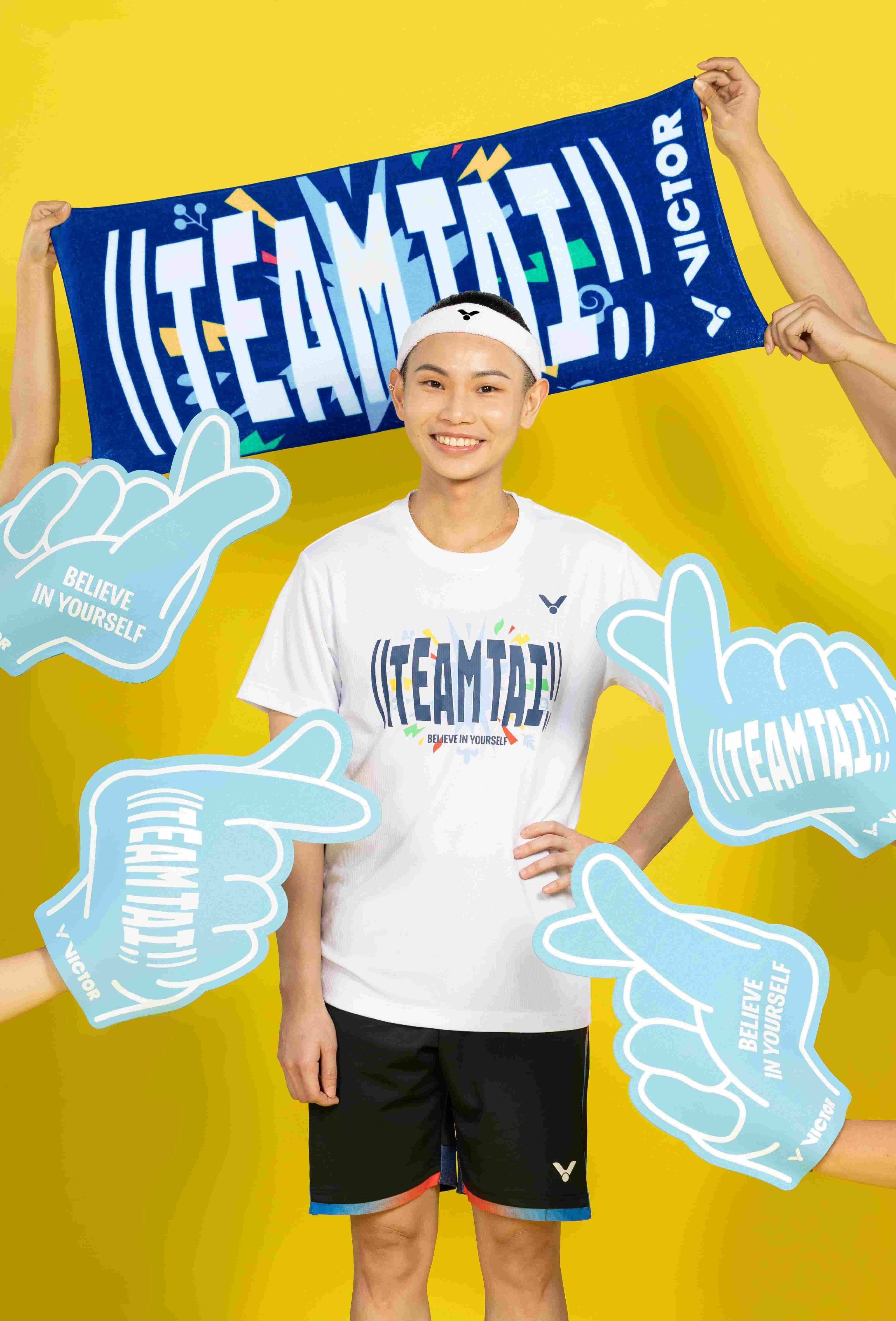 VICTOR力挺小戴生涯最後一個賽季,推出專屬「Team Tai」系列商品,Team Tai圖騰巧妙帶出加油應援的聲態感,並融入戴資穎座右銘【Believe in Yourself】,邀請大家一同加入Team Tai,一起挺戴!