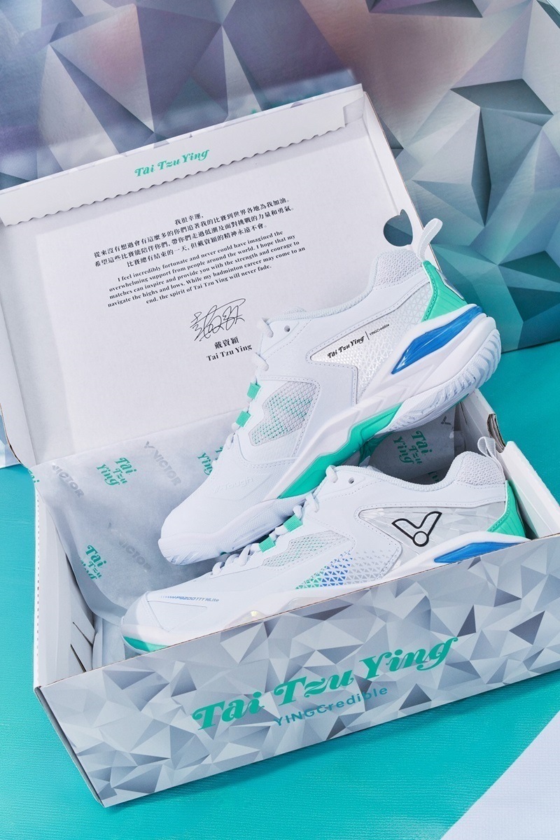 「YINGcredible - 戴資穎致敬系列」採用鑽石切割紋理為設計主題,以致敬小戴羽球場上無可取代的輝煌成就。系列色系沿用小戴裝備的經典白色,並融入高辨識度的綠松色,象徵她與眾不同、耀眼奪目的個人風格。此系列包含羽球拍、羽球鞋、包款、賽服、休閒服等商品。