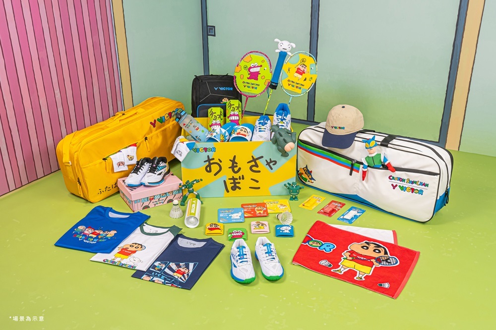 羽球領導品牌VICTOR首度攜手日本超人氣卡通「蠟筆小新」,推出一系列以卡通角色為形象設計的羽球商品,蠟筆小新與他的幼稚園小夥伴們一起換上全套羽球裝備,童趣運動風即將席捲羽球場!